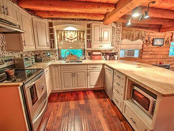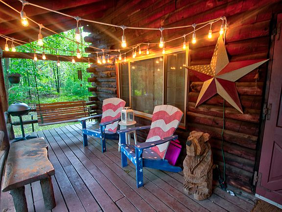 GUMBLE LOG - Newly renovated & very well-maintained. Conveniently located between Lake Wallenpaupack and Fairview Lake. No community = no dues!! This authentic log home features a large front porch, two large bedrooms, and renovated 1 1/2 baths. Enjoy entertaining in this renovated kitchen with stainless appliances, honed granite countertops and oversized peninsula that seats 5+. Master has large, double closet, wood floors, stone fireplace with wood stove insert in living room & propane fireplace in kitchen. New energy efficient windows, laundry room, outdoor shower, full poured concrete basement, large shed, lots of storage & low taxes. Can be purchased full or partially furnished for a true move-in ready experience.