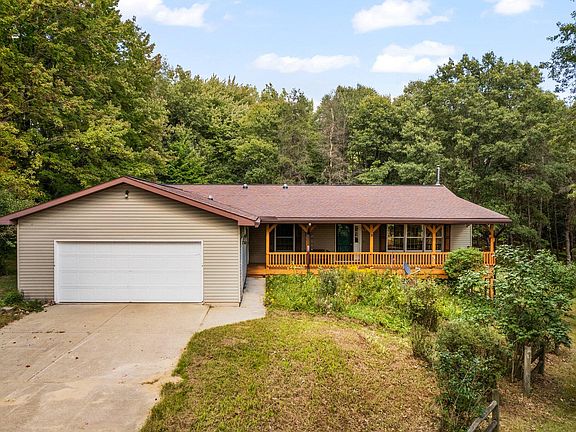 Set on a full unfinished walk-out basement, there is plenty of room to grow your living space footprint. Attached 2 car garage. Large covered front porch. Oversized back deck. Elevated views of woods and fields. This setting is one you will fall in love with, and there is even a full sauna to warm you up on cold winter nights!