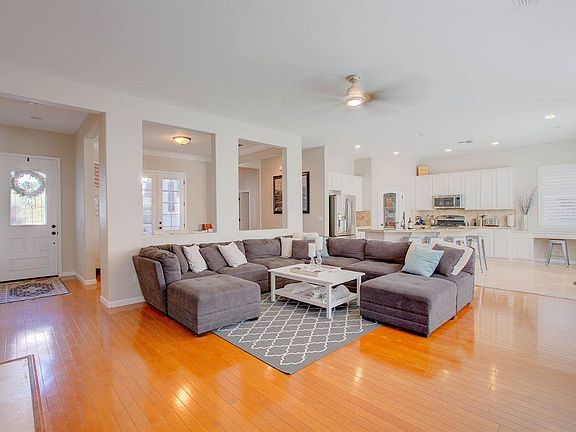 Stunning Single Story home with Swimming Pool! Front court yard leads to a spacious bright open floor plan with exquisite high-end finishes throughout. Tall ceilings, Plantation shutters , stone fireplace, hardwood flooring & granite counters , Gourmet, eat-in kitchen with large center island and walk in pantry. Luxurious master with walk in closet , jetted tub and double sinks upgraded with tile and granite. Swimming pool finished with pebble tech and waterfall.
