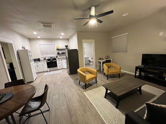 New studio style home located in the heart of Fruita! Walkable to all the things downtown! 1 bedroom and 1 bathroom. Completely furnished -standalone one bedroom home. The rent is $1400 per month and an additional $200 includes all of your utilities: electric, water, sewer, trash, and high-speed internet. Total of $1600 per month It becomes available October 1. 2025. We are open to leasing it for three months or longer. We require a three month minimum lease. We are open to month-to-month after that. All utilities will be included for an additional charge of $200 per month. There is a $1000 refundable deposit and a $200 nonrefundable cleaning fee.