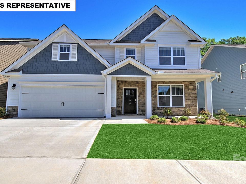 Spacious NEW CONSTRUCTION London plan with covered front porch in our community The Enclave at Falls Cove with tons of upgrades! Open Kitchen with Quartz Countertops, Pantry, Double Wall Ovens, Gas Cook-Top, Tile Floors in All Bathrooms, Large Family Room with Gas Logs, TANKLESS hot water heater and heavy trim throughout first floor main areas. A guest bedroom with a full bath also offers the perfect setting for visitors on the main level. Ascend up the staircase to a SPACIOUS primary suite with tray ceiling and luxurious private bathroom with walk-in closet and four additional secondary bedrooms with three full baths round out the upstairs living areas. Minutes from Lake Norman State Park and quaint downtown Troutman, you will never be too far from home with our industry-leading suite of smart Home Is Connected® products, keeping you connected with the people and place you value most.