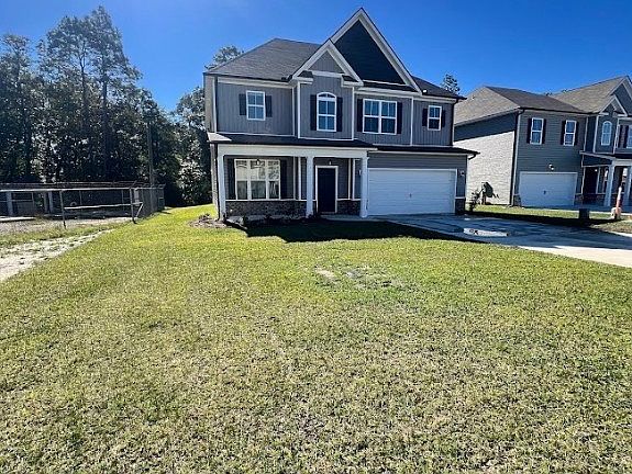 Welcome to the Woodlands! The 2618 floorplan by Faircloth Homes offers 4 bedrooms and 2 1/2 bathrooms. 2 story foyer. Formal dining room with coffered ceiling. LVP flooring in the great room, breakfast area, kitchen and dining. Granite countertops in the kitchen and primary bathroom. All bedrooms located on the second floor. Covered rear patio with fan, 2 inch faux wood blinds, sodded yard with zoned sprinkler system, and gutters on the front and the back of the home. $5,000 in closing costs with preferred lender. South Effingham Schools.