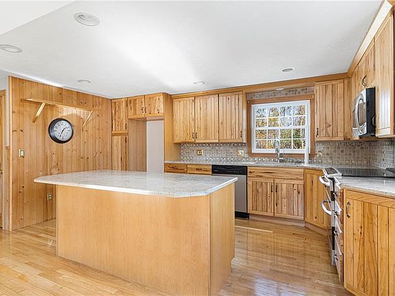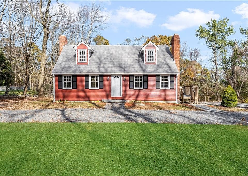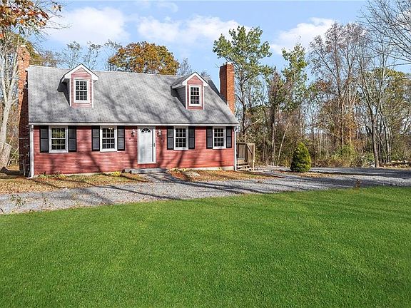 Location, Location!!! This Home is Located in the Sayles Hill Area of North Smithfield and is a Stone's throw to RT 146 but pleasantly set back & situated on a level, tree lined lot. The home itself Presents as a Cape. But once you step inside the over tone of a log cabin with all the right Modern Elements immediately makes you feel at Peace & Ready to light warm Fires in Both the fireplaces & put the hot chocolate on the Stove. Recent Kitchen Remodel adding Granite Counter Tops, Stainless Steel Appliances & Custom Cabinets blend wonderfully with the Knotty pine & sparkling Hardwood Floors That flow Beautifully into a Sun filled Liv/Din Room Equipped with a Wood Burning Fireplace & a Built in Workspace. A Large Double Parlor with New Berber Carpet & A Wood Burning Fireplace along with an Antique Designed Coal/Wood burning stove Is so roomy it could be used for both Living & Dinning. Both Full baths have been Updated with Custom Tiling & Fresh paint. The 2 large upstairs Bedrooms have New Berber Carpet and huge Double & Walk In Closets. New Doors have been installed & the upstairs Ceiling has been recently Skip Troweled for a modern finish. The Third Bedroom has new flooring and a Large Closet . This Exterior of the home was painted this year. Plumbing & electrical updates, Installation of new windows, septic pump out & chimney clean completed as well. The yard is almost an acre. Flat & set up for fun. a circular drive and ample parking. 10 Min Commute to Providence.