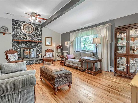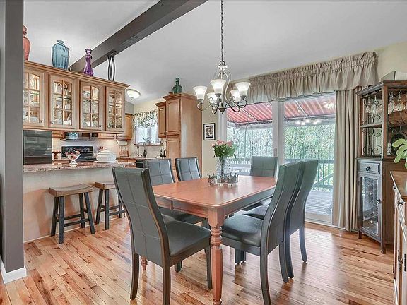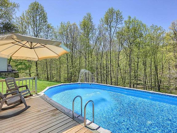 With 35 years of memories stored in their hearts, the owners of this beautiful, completely updated, 3 BR Ranch home are ready to pass the baton. Attention to every detail in style and function-both inside and out-has created a veritable oasis for today's life style. The semi-open floor plan connecting the living room, dining room and kitchen makes for easy entertaining. Custom cabinetry throughout the house (including the laundry & garage) provides plenty of storage. You're going to love the fully finished Family Room - wired for surround sound as the perfect spot for movie night. Prefer outdoor activities? Summer fun starts on your private awninged deck, then to a large partially covered patio and finally to a 2nd deck area & pool. Beautiful, mature landscaping, tall grasses, flowering perennials & stately pines grace the property, while just steps away you'll find 40 wooded acres, perfect to explore alongside the stream or just sit quietly & wait for local wildlife to come calling.
