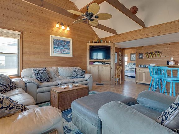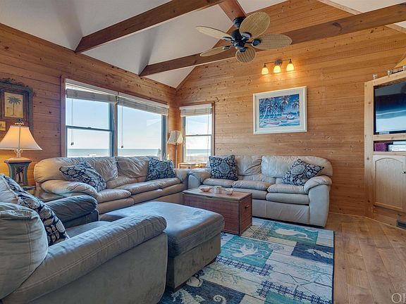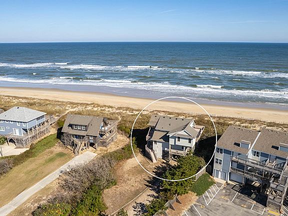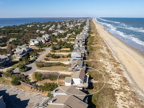 Vintage oceanfront property located on quiet cul-de-sac. 22490 square foot lot with 105 feet of ocean frontage creating many possibilities. Top floor consists of kitchen, living room, dining area, master bedroom, half bathroom and decks galore. Mid-level consists of master bedroom, two additional bedrooms sharing a bathroom, hot tub on outside deck and a media room. Ground floor has utility room, storage area, outside shower and underneath parking. Community amenities include sound front dock for fishing or launching kayaks and numerous nature trails. For additional fee Sanderling community also offers pool, racquet club and gym.