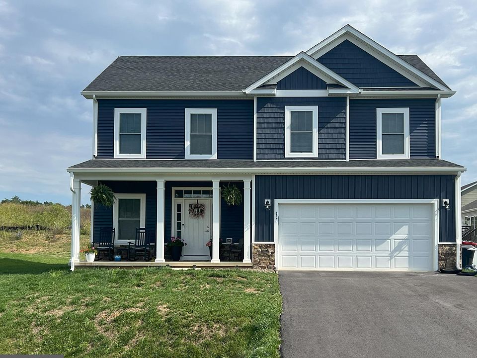 PRICE IMPROVEMENT! PRISTINE! Why wait for new? LESS THAN 1 YEAR OLD- Semi-Custom 4 Bedroom 2 full bath and one half bath 3 level craftsman home boosting an open main level plan and fully framed unfinished lower level. Vinyl shake accents front with real stone water table & charming front porch. Spacious over-sized great room. Luxury Vinyl plank flooring on main level, upper hallway, baths & laundry. Custom designer kitchen with 42" shaker cabinets, over sized island, granite tops, floating shelves, stainless appliances, soft close doors & drawes, & crown mouldings. Main level features 9' ceilings, 2 piece crown moulding, and chair rail foyer/ staircase with shadow boxes, Master suite with tray ceiling and en- suite bath with tile walls 4X3 shower and separate soaking tub. Large secondary bedrooms. upstairs laundry room. two zone HVAC. Full unfinished basement (yet fully framed for finishing!) with side walk up & 3 piece rough in plumbing-2 tone paint- flat level backyard! All 3 miles to 81- Hedgesville school district- beautiful mountain views and rolling hills of apple orchards - located off dry run exit of 81