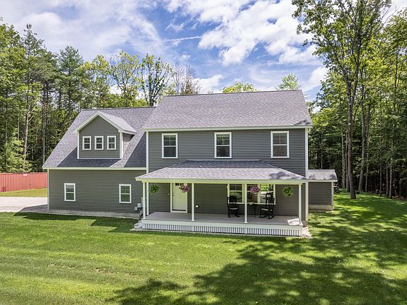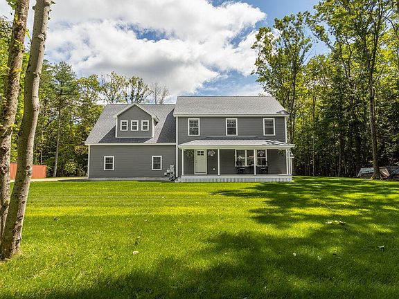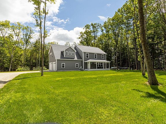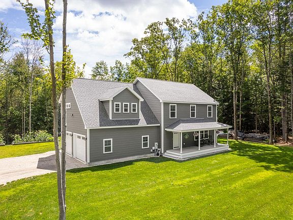Embrace the allure of Maine living at its finest. In a serene, rural setting this elegantly designed four-bedroom Colonial offers a beautiful blend of warmth and modern comforts. A charming covered front porch welcomes you, while a 2-car garage provides easy access to the living space through a grand mudroom with custom built-ins and tile floors. The kitchen boasts white shaker-style cabinets, granite countertops, and an island, flowing into an open dining area. The heart of the home provides a great space for gathering and entertaining, as it overlooks the back deck and private yard. Effortlessly, the layout flows into the inviting living room where the oak flooring enhances the sense of coziness throughout the home. Upstairs, four bedrooms and a laundry room offer comfort and convenience. The primary bedroom is a sanctuary of its own with separate walk-in closets as well as an ensuite featuring a custom tile shower.