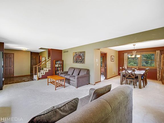 Uniquely designed trilevel with spacious rooms nestled on an impeccable .73 acre lot. The main level living areas include a formal living room open to the formal dining room with a convenient pocket door to the updated kitchen where you will find plenty of cabinetry, island and desk area. The large main level rec room boasts a fireplace and large windows overlooking the property, slider to back deck, with nearby mud/laundry room and half bath. On the upper level, appreciate the three bedrooms and full bath, with the main bedroom hosting a spacious bathroom. For additional entertaining space, enjoy the partially finished basement hosting a rec room and two offices, one currently used as a guest room. Additional storage space in the basement with access to mechanicals, etc. Additional upgrades include new furnace 2017, new hot water heater 2019, new water softener 2020, new appliances, and new storage shed. Don't miss out, call today to schedule your private showing.