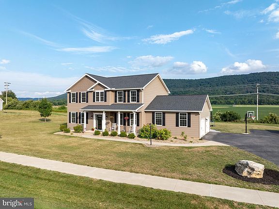 Discover the allure of this spectacular One-owner, Two-story home nestled in the picturesque Mountain View Acres subdivision. Perfectly positioned on a scenic 1-acre lot backing to farm fields, it offers unparalleled views of the neighboring mountain ranges. Situated on a quiet cul-de-sac street, this swoon-worthy home boasts eye-catching curb appeal, a charming covered front porch & beautiful landscaping. Step inside to an intelligent, free-flowing floorplan featuring 9’ ceilings & luxury vinyl flooring throughout the main floor. You are welcomed by a grand 2-story foyer, first floor home office, delightful formal dining room with wainscoting & pocket glass doors leading to the fabulous family room with a cozy propane fireplace & wall of windows that floods the space with natural light. The gorgeous eat-in kitchen comes complete with stainless steel appliances, upgraded sleek white cabinetry, granite countertops, glass tile backsplash, a walk-in pantry, large island with a breakfast bar, a single bowl stainless sink with a gooseneck faucet & a darling breakfast nook. A convenient mudroom with two coat closets provides access to the attached side-load 2-car garage. The hardwood staircase leads you to the relaxing owner's suite that features a large walk-in closet & a private full bath with an oversized dual vanity, a soothing Jacuzzi tub, a walk-in shower & a water closet. There are also 2 additional bedrooms, a full shared bath with a dual vanity & a handy second-floor laundry room. The finished basement boasts a bedroom, a full bathroom and a rec room offering great space for visiting guests. Other amenities include ample unfinished space in the basement for storage, an egress window, a Bilco door to the backyard, a half bath on the main floor, a heat pump & refreshing central air. Sliding glass doors lead to the rear covered patio & a large concrete patio with a built-in fire pit, providing you with those peaceful scenic views. Enjoy the exceptional country quiet location, yet benefit from the convenience of being just 2.2 miles from Historic Boalsburg, 4 miles from Tussey Mountain Ski Resort, 6 miles from Penn State University/Beaver Stadium & easy access to 322. Experience the perfect blend of tranquility & accessibility in this exceptional home. Remainder of 10 Year New Home Warranty included.