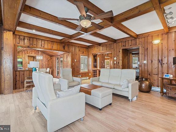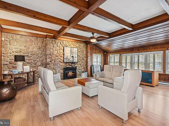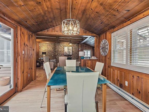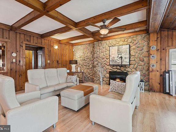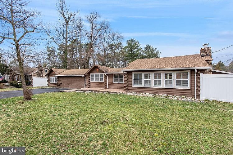 Ready for the ease of one floor living - or looking for that unique "one of a kind" vintage house...this is your opportunity! Welcome to 152 Taunton Blvd in the popular lake community of Lake Pine in Medford. Situated on a large fenced lot and in walking distance to the lake this charming log ranch is a must see. As you step inside you inside you will find a clean and light filled interior bursting with vintage charm and details throughout. The living room is amazing with a full stone wall gas fireplace and an original built in wine bar. Original knotty pine walls and vaulted beamed ceilings add to the ambiance of the space. A comfortable dining space opens off the living space and provides entrance to the rear patio and oversized fenced yard via a patio door. The kitchen is a one of a kind-with vintage details but updated for ease of use. An original built in bench with space for a table is a fun detail and the cabinets are also original but have been topped with stainless steel or stone and showcased by tiled back splash. A second living bonus space opens from the kitchen and also offers loads of potential for many uses-again beamed ceilings add detail as does a corner fireplace. The entrance into the guest room is off this space and is spacious and boasts vaulted ceilings original log walls. The main bedroom again brings a nod to the history of the house with knotty pine walls, loads of windows and built-ins. A walk-in closet offers ample storage and a half bath completes the space. A full main bath is in the hall along with a mudroom and a laundry room. Easy care laminate flooring runs throughout the house. There are loads of windows throughout the house and each has custom plantation shutters adding to the details of this house. The yard is large with vinyl privacy fencing offering your own private oasis. Great location is a poplar Lake community-easy commute to major roads and great dining and shopping options - make this a must see "one of a kind" option for your new home sweet home.