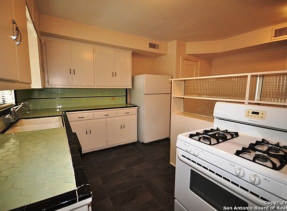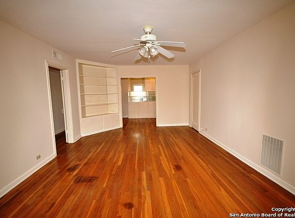 LOCATION!! A spacious upstairs two bedroom, two full bath gem-perfectly situated in the heart of Alamo Heights-within walking distance of retail shopping, dining delights and the extremely popular Central Market This luxury apartment is an ideal find for convenience, comfort and charm, one block north of Central Market. The open floor plan boasts glowing, refinished hardwood floors, ample living space and super built-in living room bookshelves. A great balance of old world charm and updated conveniences!