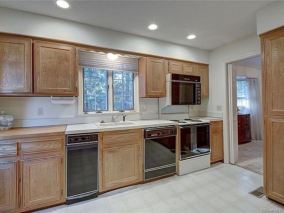 FANTASTIC LOCATION for this 3 bedroom, 2.1 bath end unit townhouse in beautiful Tunxis Village. Perfectly situated in a cul-de-sac overlooking a lightly wooded area with nice privacy. It is clean and neat just like it is but the kitchen and bathrooms are original so it is well priced for you to ultimately make it your own. A well proportioned home with eat-in sized kitchen, a more formal dining area that opens to the large living room. Off the living room is a step down den/office with a double sided fireplace and access to the private deck. Upstairs are 3 large bedrooms and 2 en-suite baths. Great closets in all 3 bedrooms including a large walk in closet in the master bedroom. Huge windows with gorgeous views from the the master bedroom and the living room and wonderful light! Lots of storage in the clean dry basement plus storage cabinets in the back of the garage. Tunxis Village is a well maintained complex with inground pool, tennis courts, dog park, and a secure gate house in a convenient Farmington location. Like golf? The Tunxis Golf Course is right next door with 45 holes of public golf and club house. Hurry! This is priced for a quick sale so I suspect this will not last long. Notes: I have requested the HOA take down the cedar tree right next to the deck; that request is currently before the Board. 5 windows do not stay up when opened and need a new cord mechanism. We have a quote for $700 so keep that in mind because they will convey As-Is. The condition of the gas log set is unknown at this time and will also convey As-Is. The stair lift will be removed from the stairs and will leave holes in the carpet. Buyers in this complex pay the equivalent of 2 months HOA at closing, called a transfer fee, which goes directly into the Reserve Fund.