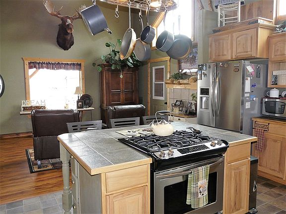 Very nice 4 bedroom 3 bath home on 3 levels. Garden Creek frontage with 2 acres in a quiet area close to down. Features vaulted ceiling with windows. Kitchen has Hickory cabinets, deep sink, large pantry cabinet. Frigidaire galleria series appliances. Sunny utility room and half bath off the kitchen. Kitchen opens up to full length covered deck with great views. Master suite has large walk in closet with walk in shower. 2 upstairs bedrooms with full bath and walk in closets. Daylight basement has family room with large guest bedroom. Walk outside to a patio or sit by the creek and enjoy the rock fire ring. Big breeze way to the work shop can store coats, boots. Work shop is heated with propane fire place. Oversized 2 car garage has 10' overhead doors. There is a separate garden/RV shed with 2 covered equipment bays. A bridge across creek goes to a wooded area with lots of pine trees. Large chain link fenced yard. Terraced with antique ties and a variety of trees and flowers.
