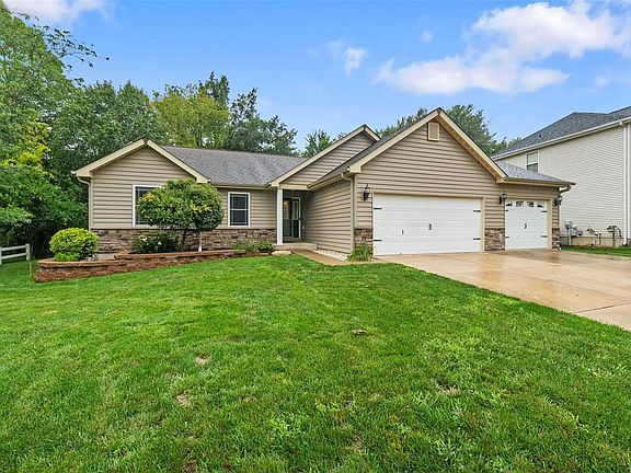 This beautiful 3 bed/3 bath ranch home is sure to please w/it's beautiful floor plan that includes- vinyl plank flooring, quartz countertops, new light fixtures, new dishwasher & refrigerator (included). The addition to the home that includes 225 square feet that could be used as an extra living space, play room or workout area. The vaulted great room is open to the dining area & has beautiful views of the backyard! The finished LL has an open & spacious family & rec/bar area, (bar included) full bath, & 4th room . New insulated siding 2021, room addition mini-split (heats and cools), energy efficient. Pella double hung windows in 2022. New energy efficient HVAC and humidifier and air scrubber 2022. Level backyard perfect for outdoor entertaining includes a built in stone grill, mini fridge & beer tap! The irrigation system will keep your lawn beautiful all year! John Weldon Elementary/Francis Howell Middle/Francis Howell High! Conveniently located near Hwy K, Hwy 40/64 & Hwy 364!