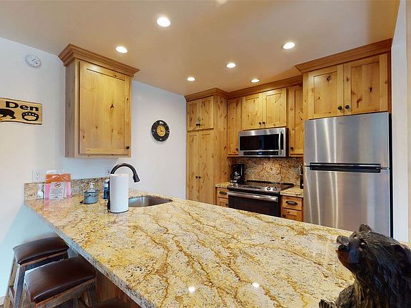 This is a rare find in Mammoth! Beautifully remodeled one bedroom, one bath with a queen bed nook in the very desirable Viewpoint condo complex. South facing with soaring views of the Sherwin Mountain Range. Park your car and walk to the Village for shopping, restaurants and Canyon Lodge/Village gondola to ski. Summer guests will love the sunny pool and proximity to the fun summer festivals. Remodeled down to the studs with new granite countertops, stainless steel appliances, pellet stove, mattresses, linens and kitchen items. Sold fully furnished and ready to enjoy or rent. Sleeps 6 comfortably. This unit made $41k in 2018 with lots of owner usage and low rates. It could make closer to $50k depending on usage, rates and management style.