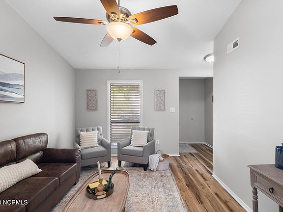 Charming duplex minutes from Camp Lejeune, shopping, and restaurants. This tastefully remodeled two bedroom one bathroom duplex is sure to impress. As you enter the home you will notice LVP flooring throughout the living room and a wood burning fireplace. Lots of cabinet space in the kitchen with a cozy dining nook. The backyard has a utility closet for storage and a back patio. There is a washer and dryer closet in the hallway. Don't miss out! Schedule your showing today!
