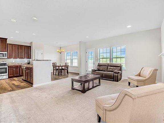 Pristine condition and pride of ownership surrounds you throughout this unique open two story! Main floor is accented with 9 foot ceilings, the open living area showcases a beautiful gas fireplace, fantastic kitchen with the high end appliances, the work island and breakfast bar. New flooring, carpet and fresh paint are highlighted by the abundance of natural lighting. 2nd level features a spacious owners suite, two walk in closets and full bath. Convenient second floor laundry equipped with dryer/washer that includes an additional drawer washer. Walk out game room area is huge with 4th bedroom and bath, great for a separate living area plus bonus storage room. Large composite deck oversees the large level lot. No worries about grass cutting and snow removal it is included. Close to Donaldson school, park and community center!