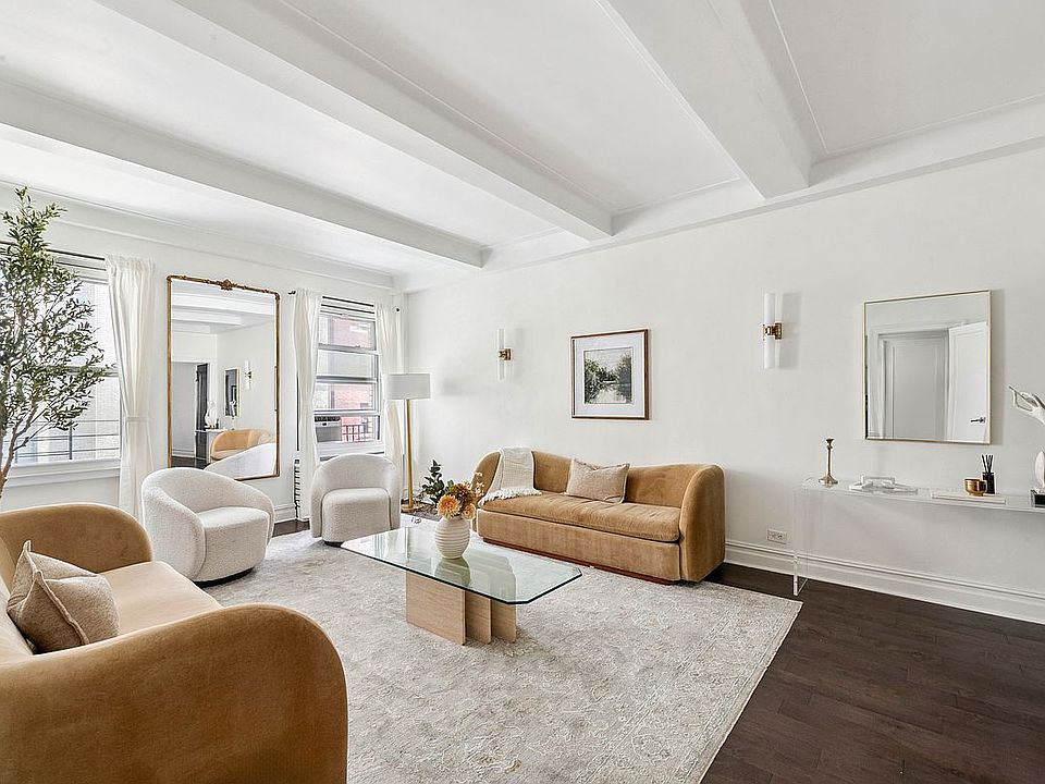 Perched within a classic brick co-op, Unit 8A is a beautifully scaled home that balances old-world craftsmanship with modern comfort. Beamed ceilings and original moldings lend architectural texture, while oversized, city-quiet windows invite in a calming quality of light, filtering the buzz of the city into a soft background hum. It's the kind of space that feels like it was made to be lingered in-a true sanctuary above the rhythm of Manhattan.