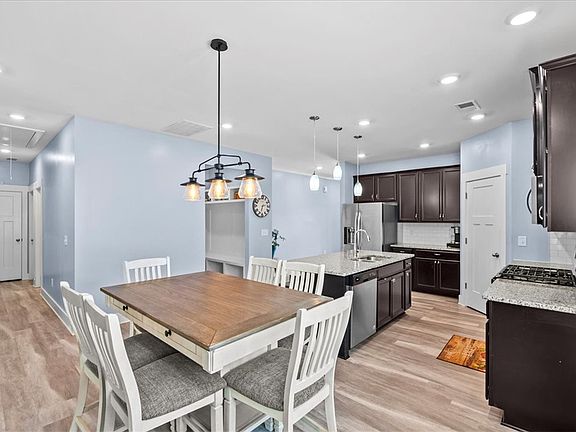 152 Walking Stick Way-Built in 2020, this single level, ranch home consists of 1750 square-foot and holds 3 bedrooms, 2 full baths, a flex room, drop station, walk-in laundry, and a fenced, tree lined back yard. High ceilings run throughout the open concept living, dining and kitchen. The kitchen features stainless steel appliances including a gas burner stove/oven, built in microwave, and dishwasher, plus a walk-in pantry, subway tile backsplash, Granite counter tops and a center island for more seating and serving space.