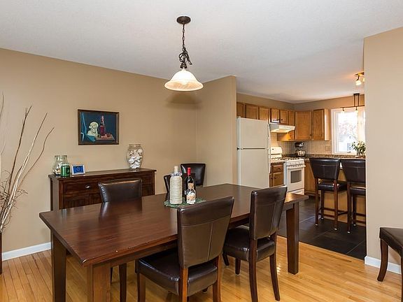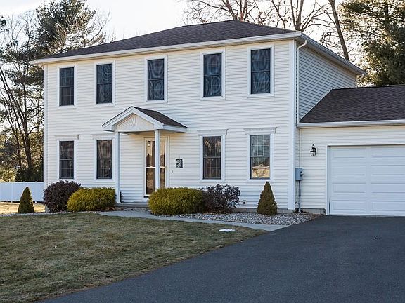 Wonderful center hall Colonial in sought after neighborhood! This well kept home welcomes you at the front door under the pediment. Enter into the open living room and dining room with hard wood flooring that leads to the eat-in kitchen with tiled floors, granite island and countertops. Includes gas stove, refrigerator and dishwasher. Slider in dining area leads to flat back yard and patio. Half bath and attached 2 car garage complete the first floor. Upstairs you'll find 3 bedrooms....one of which is a master bedroom with walk in closet. All bedrooms have wall to wall carpeting. Partially finished basement is waiting for your home office and exercise equipment. Laundry area also. Storage shed in backyard for your lawn and yard tools. Move in ready. Forced warm air gas heat,central air conditioning, installed humidifier and lawn sprinkler system. Call today to make an appointment for your exclusive viewing.
