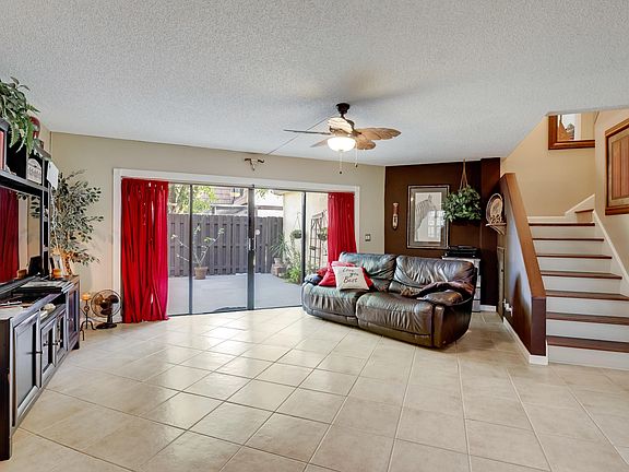 Awesome open floor plan with upgraded light bright kitchen that includes decorative backsplash with block window over sink for illuminating light, 2018 microwave and dishwasher, Track lighting, newer ceramic tile throughout townhome,upgraded1/2 bath and laundry area are on first floor, 3 months new A/C and Accordion shutters! Newer water heater. Tile on 2 floor, updated bathrooms, custom Oakwood stairs made by skilled wood craftsman, Private front entrance to townhome.Patio is great for family and kids to enjoy outside playtime! New privacy fence around patio, Pool directly across from the building