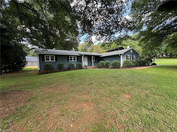 Great ranch home with lots room all on one level! Huge Livingroom w/fireplace, Large Kitchen w/tons cabinets,kitchen appliances remaining, Dining/Breakfast, Laundry room, 3 Bedroom, 2 fullbaths, 2 car garage that can be another room as its finished, Storage room. Covered front porch, Large brick patio, Beautiful landscaped yard. Lots updates include new HVAC in 2022, replacement windows. Large building with wood working shop area, water stove, loft area for storage. Home also has solar panels! Large driveway for extra parking and more!