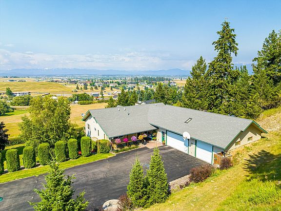 Quality Custom 1 Owner Ranch Home w/Walk-Out Lower Perched above the crowd offers beautiful sunrises, breathtaking views of entire Valley & panorama of all mountains from inside, covered deck, hot tub, lower patio + 30 GPM well & septic approval for 2nd residence. Located in ever popular Foys Lake Area, imagine you w/coffee/wine on deck or in hot tub watching birds fly by, wild animals roam & the weather passing, yet only minutes to bypass, all services & recreation, skiing, fishing, hiking, biking, more. 2.56 acres boast many amenities: Enter on tree lined paved driveway, greenhouse, impeccable lawn, waterfall & pond, flowers, bushes, shrubs, lots of parking, 3 car garage w/shop, covered front entry & fabulous well thought out home. Main floor boasts rich formal dining, corner living room, large windows, breakfast nook, well appointed kitchen, spacious master suite, office & bath + attached garage make 1 level living a reality. Newer Steel Siding & Roof, RV parking, see amenity list! Edge of town location offers peace of country yet minutes to Bypass offering short drive to Flathead Lake, Flathead River, Whitefish Ski Resort, Columbia Falls Night Life, less than 30 minutes to Glacier International Airport & less than an hour to Glacier National Park. Contact Renee' Howe at 406-885-4693 or your Real Estate Professional today!