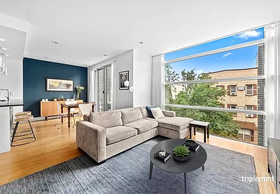 Boutique condominium living at its finest in central Williamsburg with 3B being a home offering an exceptional combination of light, airy & open layout, and outdoor space! Upon first entering the home from the private keyed elevator landing, you're met with an expansive floor-to-ceiling 14' glass window in the living area. The spacious living room is great for entertaining and features an open kitchen, dining area fitting a 6-8 person dining table with a balcony directly adjacent to the dining room to enjoy your morning coffee. Take the elevator directly from your home to your private rooftop to take in the city skyline and enjoy the sunsets. The primary bedroom features a king bedroom with multiple closets and a large steam standup shower. The secondary bedroom and bath are both nicely proportioned to ensure usable everyday living and function. Situated on a quaint centrally located tree-lined block, 152 Withers offers an incredible blend of nightlife, dining options, close proximity to L and G trains and access to McCarren Park.