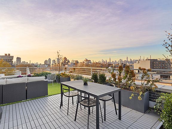 Sublime and Sunswept Urban Sanctuary! This beautifully renovated 3BD 2BA full-floor penthouse is accessed by private keyed elevator entry and highlighted by multiple private roof deck spaces with sweeping views that perfectly integrate indoor and outdoor living. Exemplifying high-style living at its finest, every element of this nearly 1500 sq ft home has been ideally curated with a modern aesthetic. With over 9 ft ceilings throughout, the airy living and dining spaces open to a striking well-appointed chef's kitchen that features Blum cabinetry, Bosch and Miele appliances, 5-burner stove, double oven, built-in wine cooler, marble backsplash and soapstone countertops. An expansive skylight over the kitchen allows for streaming sunlight throughout the day. The bedrooms are removed from the living/dining areas, ensuring maximum privacy. The en-suite master bedroom -- with its own private terrace -- has a spacious walk-in closet and a gorgeously gut renovated spa-like bath with heated floors, copper fixtures, terrazzo tile, rainfall shower and freestanding deep soaking tub. The two additional bedrooms are comfortably-sized with large windows and ample closet storage. The other two private outdoor spaces are accessed from the dining area and accentuate how rare of a find this special home is. Spanning almost 700 sq ft with expansive NYC skyline views, the dual-level terraces have been lushly professionally landscaped with irrigation built into the planters and multiple lounging and dining areas. Other appointments found in the home include: direct vent washer/dryer and stovetop hood, newly refinished wide-plank oak hardwood floors, central A/C with Nest thermostat, and abundant custom closets. Located on a quiet, tree-lined block, 152 Withers Street is a nine-unit boutique condominium 4 blocks from the L train Graham stop. Tax abatement in place through 2024.