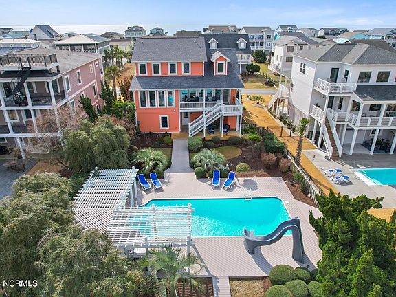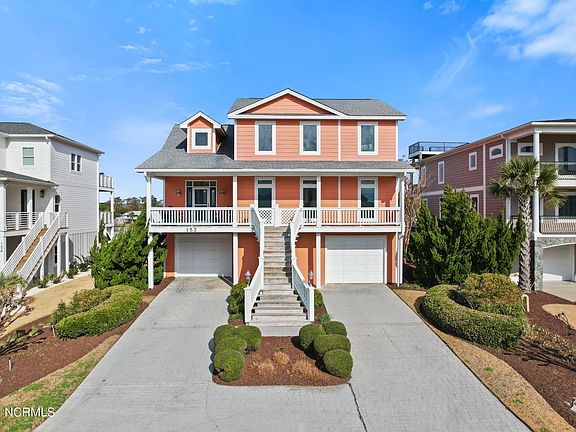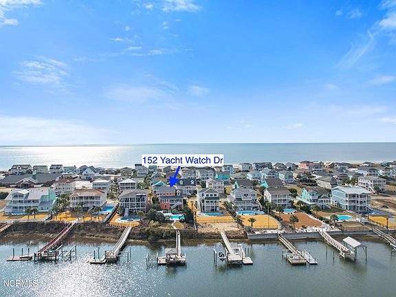 Welcome to 152 Yacht Watch Dr., a spectacular ICW front home centrally located in one of the most desirable sections of the island. This property features breathtaking views of the waterway, Holden Beach bridge, Provision Company, and more. Just a short walk or golf cart ride will bring you to the Holden Beach park, restaurants, town hall, annual festivals, and the Holden Beach Chapel. Boasting 5 bedrooms, multiple living areas, and over 2,700 Sq. Ft. there is plenty of room for the entire family. That does not include the additional heated and cooled area on the ground level which measures approximately 350-400 Sq. Ft. Looking for entertainment space? The stunning backyard showcases: an outdoor shower, a meticulously landscaped lawn, huge 16'x40'x8' deep in-ground pool with waterslide, Azek decking, and a pergola covered lounge area with table and chairs perfect to watch the sailboats and yachts go by. Continuing to walk down towards the waterway, there you will find your own private floating boat dock and 10,000 lb. boat lift. Enter the main level to large open living, dining, and kitchen areas that have been updated, large windows facing the Waterway side allowing an abundance of natural light, as well as a powder room, laundry area, the spacious master bedroom, bathroom and walk-in closet. The upper level features the additional 4 bedrooms, 2 full baths, as well as the second living area. Down on the ground level you will find a large two car enclosed garage serviced by two mini-split units, storage areas, and the additional heated and cooled space. Even better? This home is offered fully furnished and turn-key. Rental revenue estimate available upon request. Don't miss out on this exceptionally unique property. Schedule a showing today and experience its charm before it's gone!