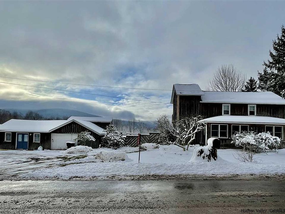 HISTORIC ORIGINAL HOG MOUNTAIN FARMHOUSE - One-of- kind! TOTALLY RENOVATED farmhouse with LONG MOUNTAIN VIEWS and ALL USABLE FLAT ACREAGE (think future pool if you like). FANTASTIC LOCATION, on QUIET ROAD, MINUTES FROM BELLEAYRE SKI RESORT! The interior is a DREAM....that perfect mix of RUSTIC HISTORIC CHARM WITH SLEEK MODERN DETAIL. HUGE MUD ROOM WITH HAND-CRAFTED BARN DOOR from local artist Gary Mead. The main floor features an OPEN FLOOR PLAN with SOARING CEILINGS, WOOD FLOORS and SUN-DRENCHED ROOMS anchored by a FLOOR-TO-CEILING CENTRAL STONE FIREPLACE. Kitchen cabinets were crafted with RECLAIMED BARN WOOD from original barn! INDOOR/OUTDOOR LIVING with HUGE BACK DECK built to support a hot tub with electrical in place for this purpose. Upstairs is a HAVEN.... a totally separate and PRIVATE SUITE with INFRARED & STEAM SAUNA ROOM complete with windows to take in the mountain views. LARGE MASTER BEDROOM with GORGEOUS MODERN EN-SUITE BATH with HEATED FLOORS and UNIQUE STONE SHOWER. Plenty of room for all with 2 additional bedrooms and another full bath (renovated with GLASS TILE and barn wood detail. Property also includes LARGE OUTBUILDING with tons of storage and garage space. New furnace installed in 2018 had the capacity to add air conditioning if you like! QUIET, TRANQUIL yet close to all local services and attractions including SKI RESORTS, GOLF, HIKING, KAYAKING, FARM MARKETS, local restaurants and more. 2.5 hours from the GWB. YOUR CATSKILL DREAM AWAITS!