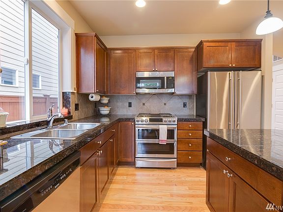 Great Opportunity to own this hard to find classically beautiful home with 5 bedrooms 2.5 baths. Master conveniently located on main features 5 piece spa bath & walk in closet. Chef's kitchen w/new Samsung gas/electric double oven SS appliances, pantry. Office, separate DR, new paint, 4 beds up with extra large bonus rm. Fully fenced private backyard backs to greenbelt, water feature. A/C, new water heater. Beautiful community park, minutes to Mill Creek Town Center. Henry Jackson High.