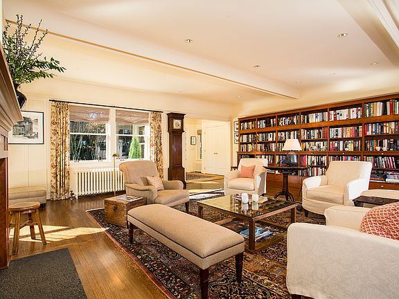 Traditional home with timeless appeal in lovely park-like setting. Built in 1908, extensively updated with desired amenities. Gracious formals; sun room; great kitchen with informal living/dining areas; 6 bedrooms and 4+ baths, including master suite; 2 fireplaces; rec room; exercise room; attached 2-car garage with parking area/sport court. Large 17,555-sq-ft lot in prime location offers gated front yard; mature plantings, wraparound lawn, inviting terrace and several tranquil sitting areas.