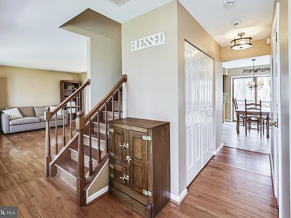 Enjoy the sunrise on the covered front porch and the sunset on the back deck while overlooking your 1.77 acres in the desired neighborhood of Queensberry – Nestled in the heart of Huntingtown, this home is situated on a flat, private lot and has been enhanced with over $100,000 of upgrades – 3 Level Colonial with partially finished walkout basement – Upgraded Kitchen/Breakfast area w/granite countertops/tile backsplash/ceramic tile floors & stainless steel appliances (French door refrigerator with water dispenser & ice maker, Convection built-in microwave, 5 element electric convection range & stainless steel tub dishwasher) – Hardwood flooring in living , dining and foyer – Formal dining room with bay window, crown & chair molding – step down Family room with brick fireplace/wood burning stove – Primary Bedroom with walk-in closet – Primary Bathroom with dual sinks, shower & sunken tub – 2nd Bedroom with transom windows – all bedrooms with overhead light ceiling fan combo – Walkout lower level – Cul-de-sac lot backing to trees – Deck with stairs to 2nd deck - Fenced rear yard – Professional Landscaped Yard – 2 unit dual zoned HVAC system – Many windows with views of front and rear exteriors - Major upgrades/updates include: Roof, 6 " gutters & 3" X 4" downspouts with gutter guards (2022) with transferable warranty, porch maintenance free columns (2020), New HVAC system (2022), new front door with storm door & new framing with sidelites - New garage doors with openers and remotes – interior of home has been professionally painted – Award winning Huntingtown High School district.