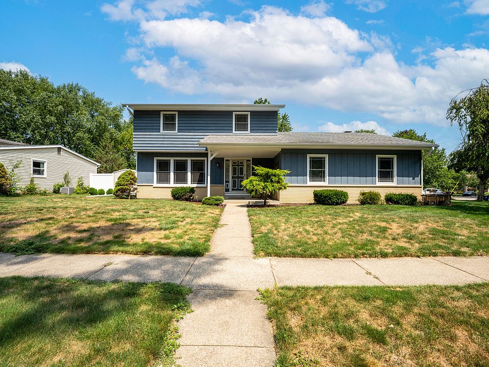 Great location for this spacious 4 bedroom, 2.5 bath home with so many updates (full list from over the years attached to listing). Sidewalks and neighborhood elementary, short distance to Middle and HS, plus easy highway access .The main floors offers a large LR with plenty of light, a Dining Room off of the lovely updated kitchen with eating area and pantry. Main floor updated 1/2 bath and laundry offers great convenience and you will enjoy the Family room w/ brick FP with gas insert which opens up to the oversized 3 season room w/ a maintenance free privacy fence around the entire yard, with a storge shed. Upstairs are 4 good sized bedrooms, including the primary en suite all with wood floors and the family bath. Both primary and family baths are also updated. The finished basement wi a mid century modern feel has a large family room w/ electric FP and two additional rooms great for crafting, or office space. Use your creative decorating ideas for these areas. All of this and still plenty of storage space in the unfinished mechanical area.