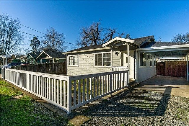 Two homes on one lot! The moment you walk in you will be delighted! The front house is a 2 bedroom, 1 bath and approximately 720 square feet. It features a light and bright living room with vaulted ceilings and windows. Step foot into the spacious kitchen and you will find new vinyl flooring and access to the back yard. Other amenities include new carpet throughout, dual pane windows, indoor laundry, ceilings fans, carport space, and a nice front yard lined with a white picket fence. The second unit is newer with the same floor plan and similar amenities. It features newer white cabinets and laminate flooring. The units are separated by a fence and have their own private back yards and separate PG&E meters. Centrally located, close to freeway access, numerous shopping locations, parks, and Sierra Nevada Brewery. Don't miss out on these quaint bungalows before they're gone!