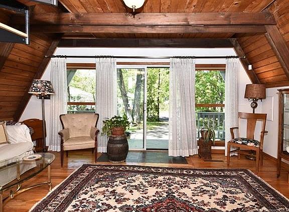 Cozy, unique and move-in ready describe this one of a kind A -frame home. Features include a warm and inviting living room, hardwood floors, central air, 2 full updated baths, a spacious master bedroom with an adjoining sitting room or office, a 2 car garage and a large private backyard perfect for summer parties or barbecues. Make this home your own and feel like you're on vacation all year long. Easy access to major highways, shopping and restaurants.