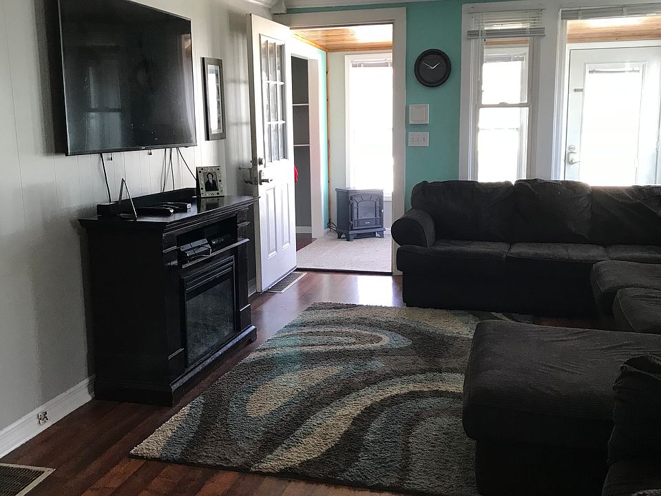 Move in ready, open through entire house, house fan, central air and heat, under cabinet lights, sunsetter awning, master bath with double sink, new front porch enclosure, office, two car garage, 5 storage units. Taxes are only $700/yr. Basement storage.