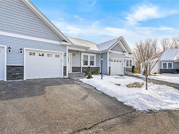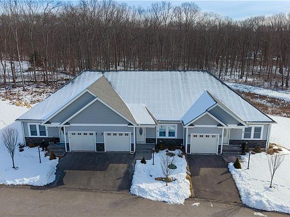 Welcome to McIntosh Hill Estates, a premier luxury condominium community on Chopmist Hill Road in Scituate. This beautifully maintained, one-level resale residence built in 2022 offers 1,450 sq ft of refined, thoughtfully designed living space. A bright, open-concept layout showcases an expansive living and dining area ideal for both everyday comfort and elegant entertaining. The kitchen serves as the centerpiece of the home, featuring granite countertops, a generous center island, stainless-steel appliances, a stylish backsplash, and a rare oversized walk-in pantry offering exceptional storage and functionality. The residence includes two spacious bedrooms, highlighted by a luxurious primary suite with a private en-suite bath featuring a walk-in shower and double vanities. The second bedroom is generously sized and served by a separate full bathroom. Additional amenities include central air, gleaming hardwood floors throughout, a dedicated laundry room, a private deck for outdoor enjoyment, and a one-car garage with automatic opener and private driveway. The full unfinished walk-out basement provides excellent storage and outstanding potential for future expansion. Conveniently located near the new police station, shopping, and local amenities, this move-in-ready home delivers upscale living with low-maintenance ease.