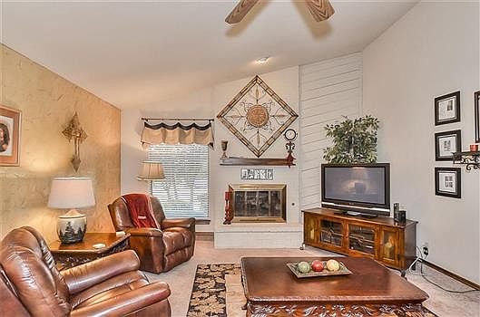 NEW CARPET! 3Bed/2Bath Home with AMAZING Curb Appeal ~ OPEN Living Room Features HIGH Vaulted Ceilings, BEAUTIFUL BRICK Fireplace, Ceiling Fan & is Open to the Second Living/Dining Area (Currently Being Used as Office Space) ~ Kitchen Has LOTS of Cabinets & Counter Space, Eating Area, STAINLESS STEEL Appliances & A Sliding Door to the Back Patio ~ GREAT Master Suite with HUGE Walk-In Closet, Ceiling Fan, DOUBLE Vanities with Make-Up area & Separate Tub & TILE Shower ~ SO MUCH STORAGE in this FABULOUS Home! TWO FANTASTIC Guest Bedrooms both with Ceiling Fans and ROOMY Closets ~ Welcome Home!