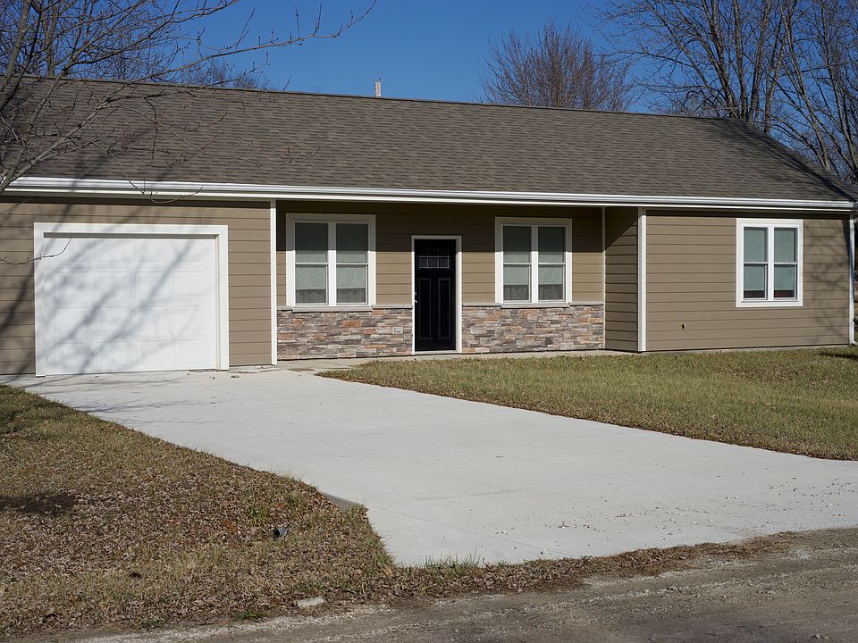 Great small home in Burlington !! Open living / kitchen area with vaulted ceiling. Two bedrooms, Single bath, laundry and attached one car garage. Living / kitchen has laminate wood floors, tile in bath and laundry with carpeted bedrooms. Appliances were new with the build and are included in sale. The house sits on 2.5 lots and has cement drive and patio out back.