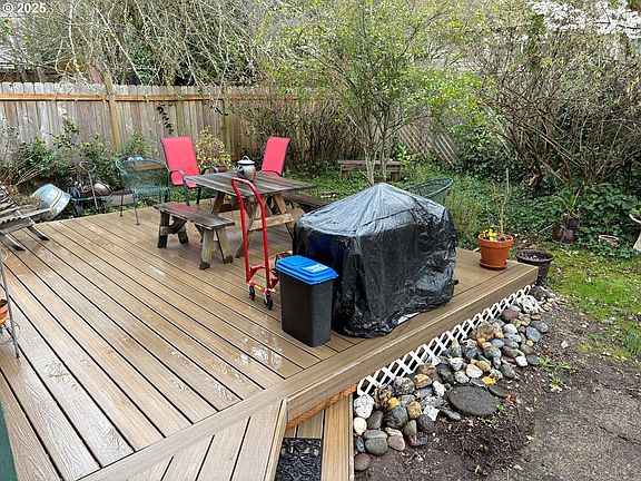 Wonderful location in SE Eugene between U of O and Lane Community College.  Brand new Trex Select decking & newer vinyl windows.  Home has a room off the living room that could be used as an office or dining room or converted into a 3rd bedroom.  Original hardwood floors in the living room.  Large kitchen with pantry. Laundry hookups located in back of bathroom. Smaller bedroom has 2 closets. Huge primary bedroom has direct access to rear deck. Good sized mud room off back of kitchen with access to rear deck, yard, and driveway.  Home needs updating - great potential for a buyer to put their stamp on this home.  Whole home inspection completed and repairs done prior to listing.  New roof will be installed prior to close.  Room dimensions are approximate.  Interior photos prior to tenancy.