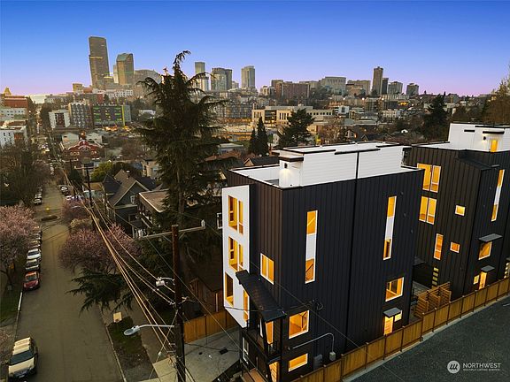 Stunning new townhome in Central Seattle's Squire Park. Outstanding views of Seattle Skyline, Stadium District & Mt Rainier. At the cusp of First Hill & a short walk to Seattle U, Swedish & Harborview Hospitals. Well designed w generous layout, floor to ceiling windows, designer detail & finishes. 3 beds/2.5bath. Beautiful kitchen with Bellmont cabinets, quartz counters, stainless appliances & eat-in counter. Seamless flow of living spaces & generous layout. Primary suite enjoys mini-split AC, en-suite bath & walk-in closet. Addt'l upper bedrm & bath. 1bed/1bath at entry + flex bonus space for home office. Amazing views for relaxing on the rooftop deck.