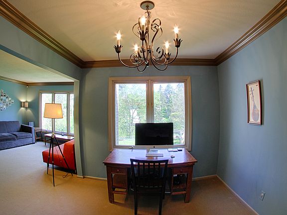 This 4 bed, 3 bath, 2 car garage, ranch walk-out is located in the beautiful Tuthill neighborhood on the southeast side of Sioux Falls. Easily walk or bike to Spencer, Tuthill and Lewis parks, bike trail, Big Sioux River, library, pool, and John Harris Elementary. The main floor consists of a master bedroom with ample closet space and master bath, two additional bedrooms, living room, dining room, eat-in kitchen with newer appliances. The walk-out lower level has a beautiful wood paneled 4th bedroom currently being used as a TV room that comes with sound panels, TV, audio components and speakers. The 5th large non-legal bedroom, bathroom, two multi-purpose rooms and a large partially finished laundry room finish out the lower level. This ready to move into home sits on a huge lot with fenced-in backyard with a stream, trees, kids playset, and sandbox; it also displays beautiful crown molding, a wood fireplace, 3 bedrooms on the main floor and is wired for security.