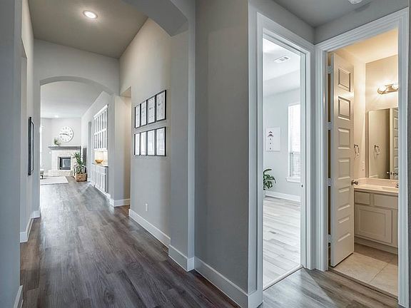 Stunning Highland-built 4-bedroom home in resort-style neighborhood! Open style concept perfect for entertaining with plenty of natural light & upgraded flooring!Beautiful kitchen boasts granite counters,white cabinets,stainless steel appliances,island breakfast bar,gas cooktop,convection oven & tile backsplash. Living area features stone fireplace with custom glass front built-ins in Dining area.Gorgeous Master & spa-like bath with dual sinks, vanity area, garden tub & WI closet. Relax outdoors on the Extended patio overlooking the huge backyard perfect for pool, pets or play! Enjoy amazing community amenities to include resort style pool, carriage house, parks, playgrounds, hike-bike and private lake-pond.