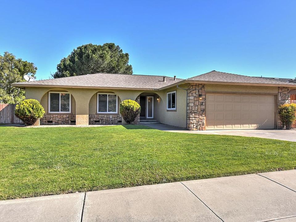 This lovely home is located in established Hollister neighborhood and perfect for your first time buyer! Step down into cozy family room with fireplace for those cold winter days, larger master bedroom with walk in closet, master bathroom with dual sinks, tile and laminate floors in high traffic areas, solar tube in hallway brings in natural light, ceiling fans in bedrooms & family room. Newly painted deck in backyard with built in bench and BBQ area for all your entertaining.
