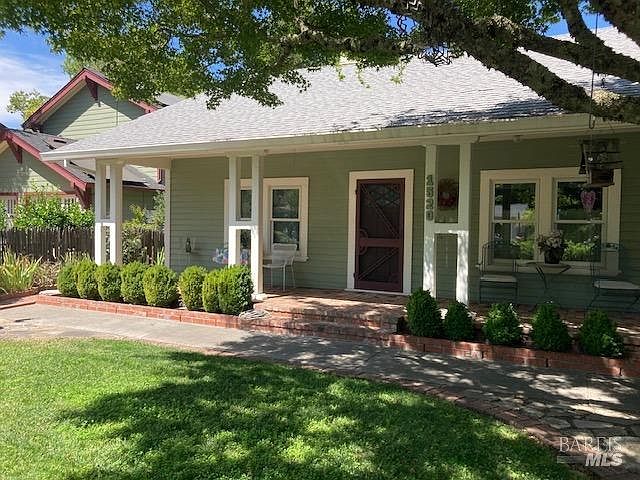 Calistoga Bungalow -First time on the market in over 65 years. This unique property exudes charm and curb appeal. 3 bedrooms, 1 bath, living room w/ fireplace, formal dining room and a country kitchen. Oversized two car garage with workshop, possibility for an ADU. Beautifully landscaped front and rear yards on this gated 8748 sq. ft. lot. New HAVC in 2021, New Anderson windows in 2019. Lovingly cared for, now ready for a new owner to make updates.