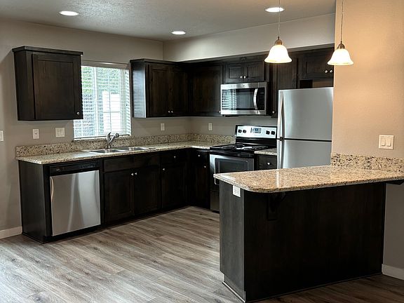 Welcome to modern living at its finest! This stunning 3-bedroom, 1.5-bathroom townhome is the epitome of contemporary comfort, featuring a sleek and stylish interior that will make you feel right at home and built in 2018. Amenities include; washer and dryer in-unit, granite countertops throughout, a breakfast bar, carpet upstairs in all 3 bedrooms, and luxury vinyl plank hard floors downstairs in main living, kitchen and half bathroom, stainless steel appliances, garbage disposal, back patio, plantation style modern blinds, and landscaping included. Enjoy a quiet community with 14 townhome units total. Surrounded by trees and located in its own cul-de-sac, this community is low traffic with plenty of parking. Parking headaches are a thing of the past with ample parking available, ensuring that you and your guests always have a convenient place to park. Say goodbye to the stress of searching for parking spaces, and enjoy the ease of coming home to your designated spot. An additional designated parking space is available for $75/month. Common area landscaping is included. Don't miss the opportunity to make this modern haven your new home Welcome to modern living at its finest! This stunning 3-bedroom, 1.5-bathroom townhome is the epitome of contemporary comfort, featuring a sleek and stylish interior that will make you feel right at home and built in 2018. Amenities include; washer and dryer in-unit, granite countertops throughout, a breakfast bar, carpet upstairs in all 3 bedrooms, and luxury vinyl plank hard floors downstairs in main living, kitchen and half bathroom, stainless steel appliances, garbage disposal, back patio, plantation style modern blinds, and landscaping included. Enjoy a quiet community with 14 townhome units total. Surrounded by trees and located in its own cul-de-sac, this community is low traffic with plenty of parking. Parking headaches are a thing of the past with ample parking available, ensuring that you and your guests always have a convenient place to park. Say goodbye to the stress of searching for parking spaces, and enjoy the ease of coming home to your designated spot. An additional designated parking space is available for $75/month. Common area landscaping is included. Don't miss the opportunity to make this modern haven your new home