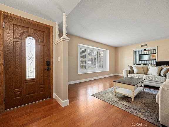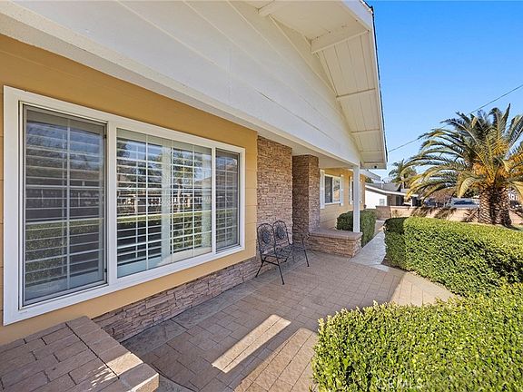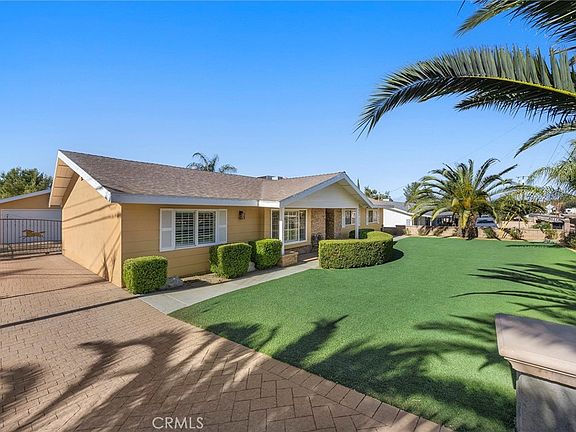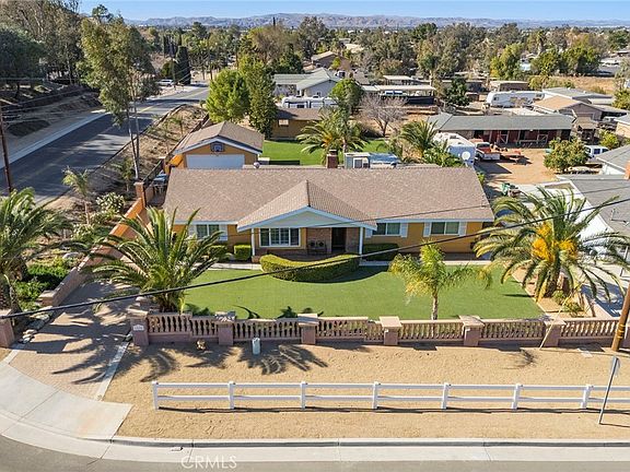 Discover the perfect blend of functionality and charm in this single-story ranch-style home. Showcasing a prime corner lot with undeniable pride of ownership curb appeal, this property features a low-maintenance yard adorned with lush artificial turf. The highlight? An extra-long, elegant driveway crafted with stylish pavers, offering both functionality and a touch of sophistication. Whether you're envisioning a stunning backyard oasis or need space for your RV or recreational vehicle this home delivers. Plus, for horse enthusiasts, the property features a custom two stall barn and a tack/feed room—ideal for establishing a new home for your equine companions. Two separate gated entries—front and rear. The second entrance at the back provides closer access to the RV parking and horse amenities, adding convenience and ease. The kitchen is large, complete with Corian countertops, a breakfast bar, ample storage, and recessed lighting. Plenty of space to add a center island if you desire. A door that leads you to the back creating seamless access to the expansive backyard, creating an effortless indoor-outdoor flow. There's a built-in desk offering the perfect spot for paying bills or helping the kids with homework. Adjacent to the kitchen, the cozy family room features classic wood beams, an updated wood-burning fireplace with a raised hearth. The formal living and dining rooms are generously sized, perfect for hosting gatherings or accommodating your furnishings. Down the hall, you'll find three well-sized bedrooms with ample closet space. The first bathroom includes a handsome vanity with granite countertops, soft-close drawers, and a walk-in shower with travertine floors. The primary bathroom offers an upgraded bathroom with dual sinks, vanity and a walk-in shower, with a convenient shower niche, and a bench for added comfort. Additional highlights include solid oak wood flooring, double-pane windows with shutters, and a sprawling backyard featuring mature palms, easy-to-maintain artificial turf, and a serene rock waterfall. The covered patio invites you to relax year-round, enjoying the tranquility of your private retreat. Detached garage is located on the side of the home. Located close to schools, shopping, freeways, and more. This home is ready for its next chapter. Don't miss the chance to make it yours!
