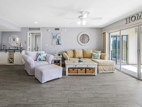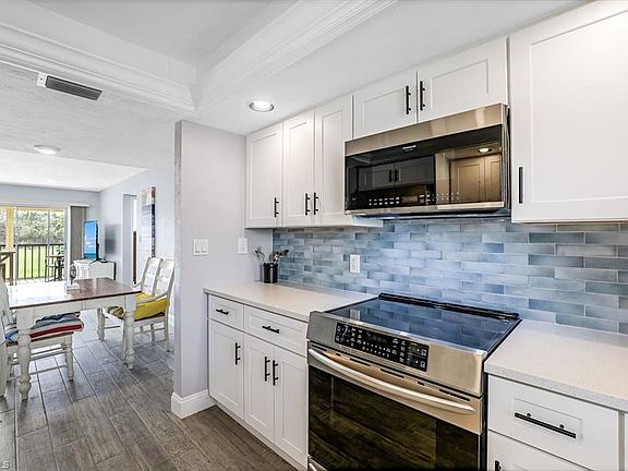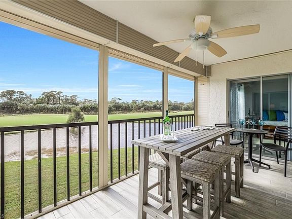 Wow what a view! This completely remodeled and upgraded 3 bedroom residence is turnkey furnished so you can start enjoying the Florida lifestyle immediately. Perfectly located close to Naples white sandy beaches, fabulous dinning selections and the nightlife & shopping at Mercato. All new wood look tile flooring flows throughout this home. The all new kitchen and baths sparkle with coastal flair and custom accents. Solid wood cabinetry, quartz counters & glass backsplash give this a modern vibe. All new (2022) stainless steel appliances have an induction range and the special pots & pans too! The owner's suite is spacious and has 3 closets all with solid wood shelving and organizers. The bath has new cabinetry, quartz counters, custom tile & separate soaking tub to round out the spa experience. The 2 bedroom guest suite also has solid wood custom closet shelving & modernized bath. All windows have been replace with storm impact windows and large lanai has electric storm shutters, giving the owner peace of mind. Southern exposure keeps this home light & bright. Sip coffee on the lanai and delight in the golfing activity or have a cocktail and look for the wildlife under the stars. NEW AC NOVEMBER 2024!
